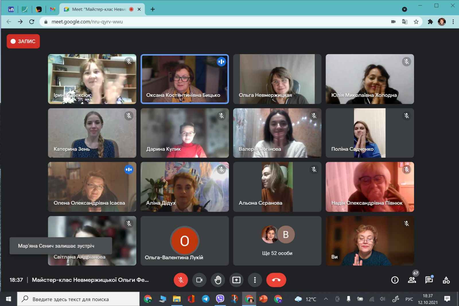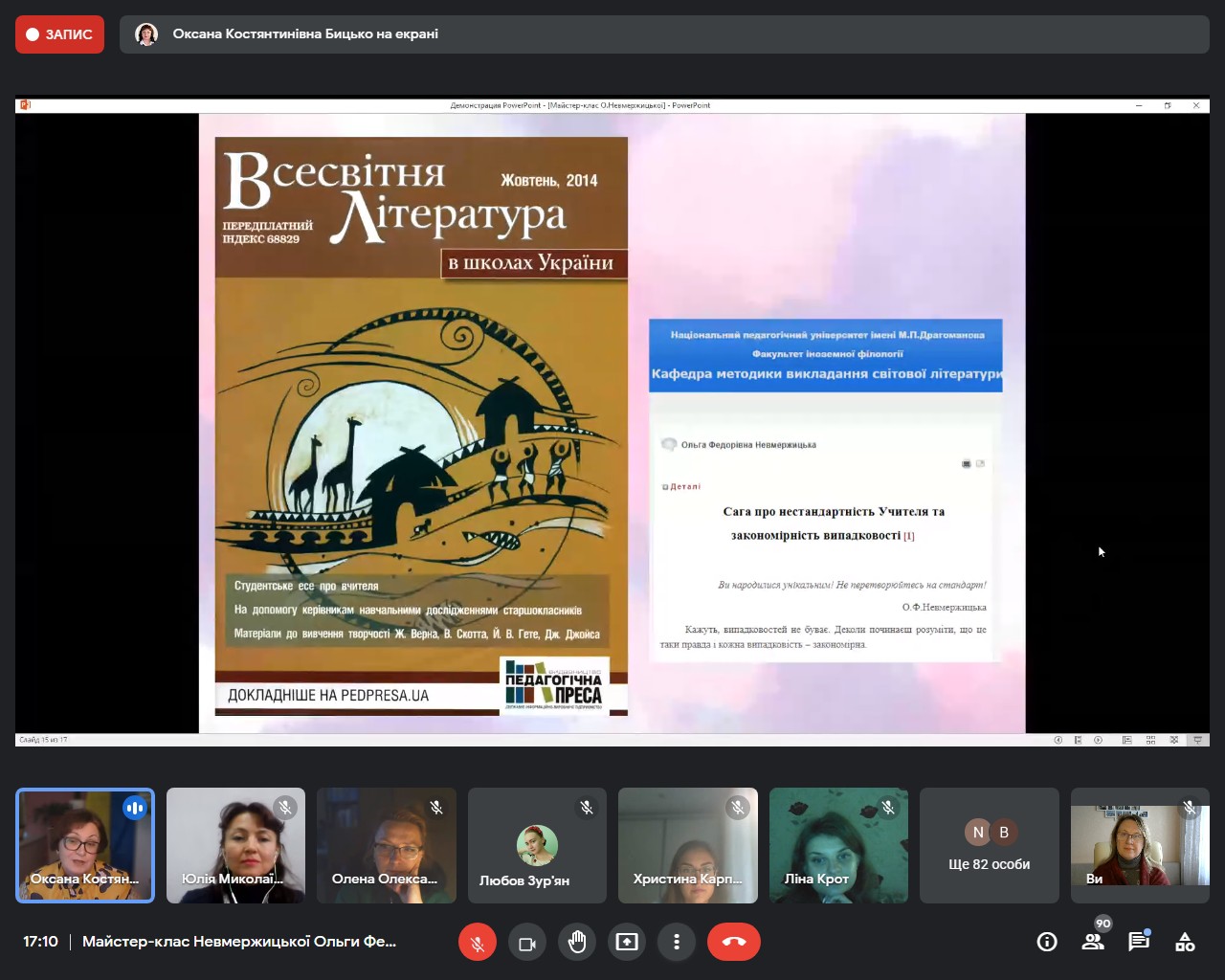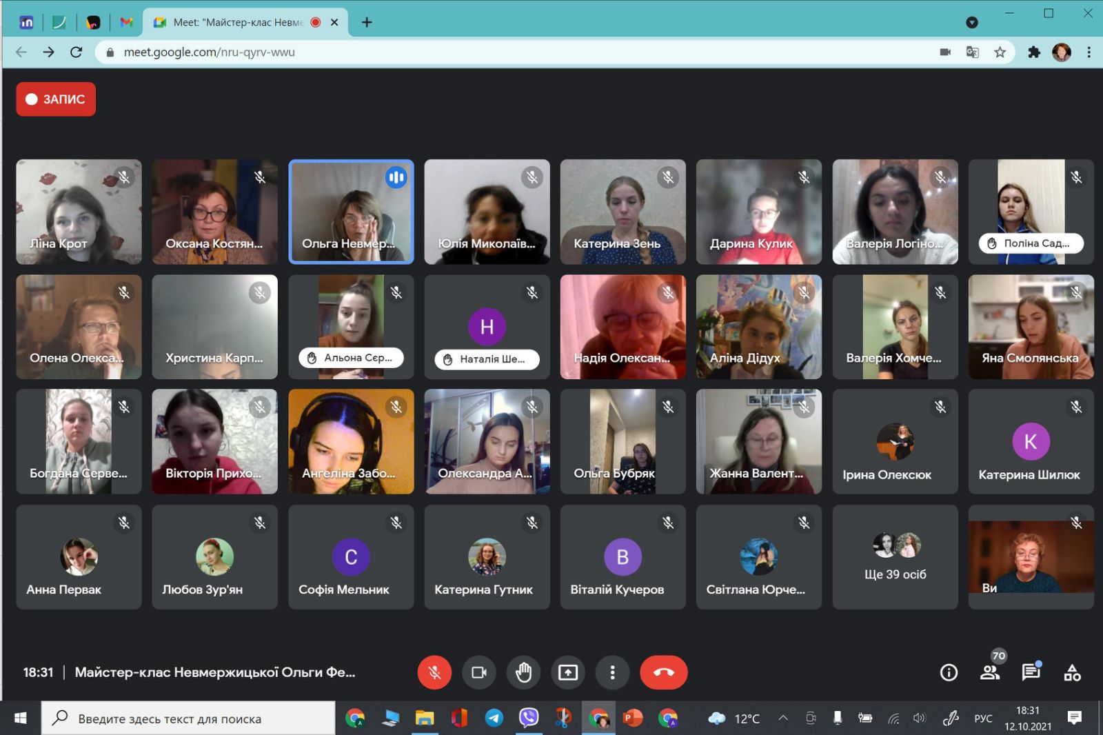 12 жовтня відбулася онлайн-зустріч викладачів та студентів факультету іноземної філології НПУ імені М. П. Драгоманова з відомою в Києві та Україні педагогинею, Заслуженою вчителькою України Ольгою Невмержицькою.