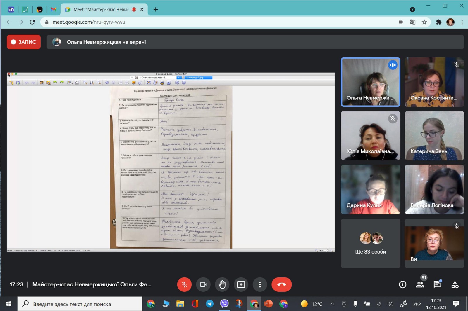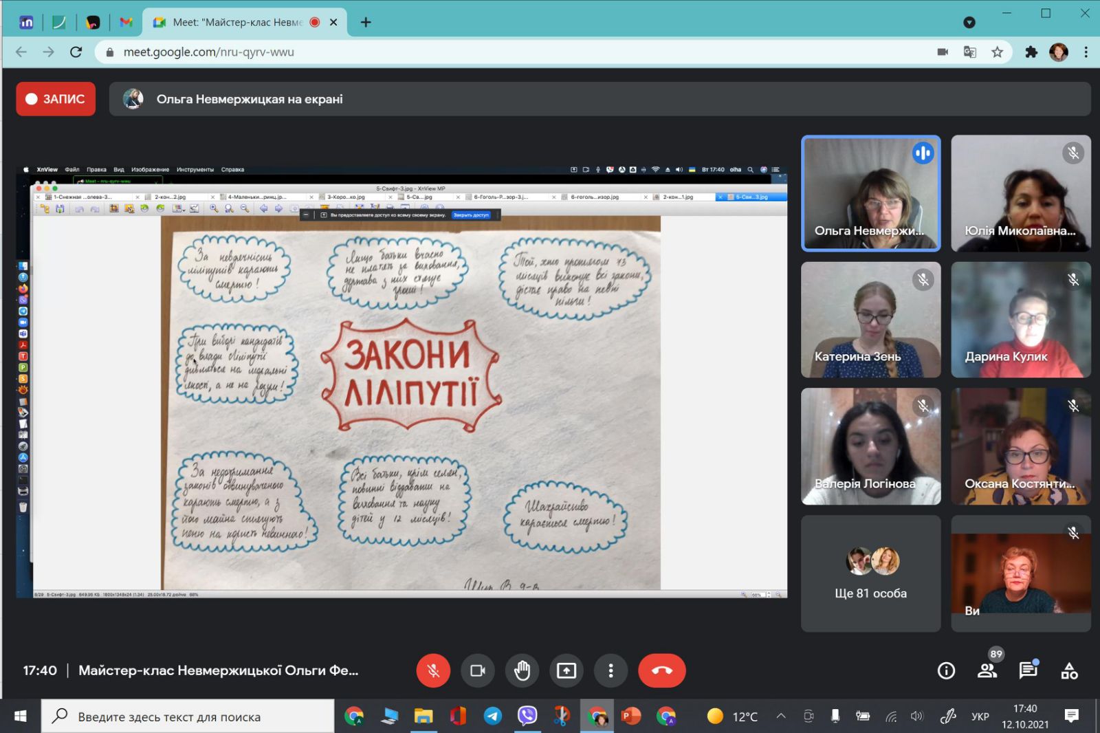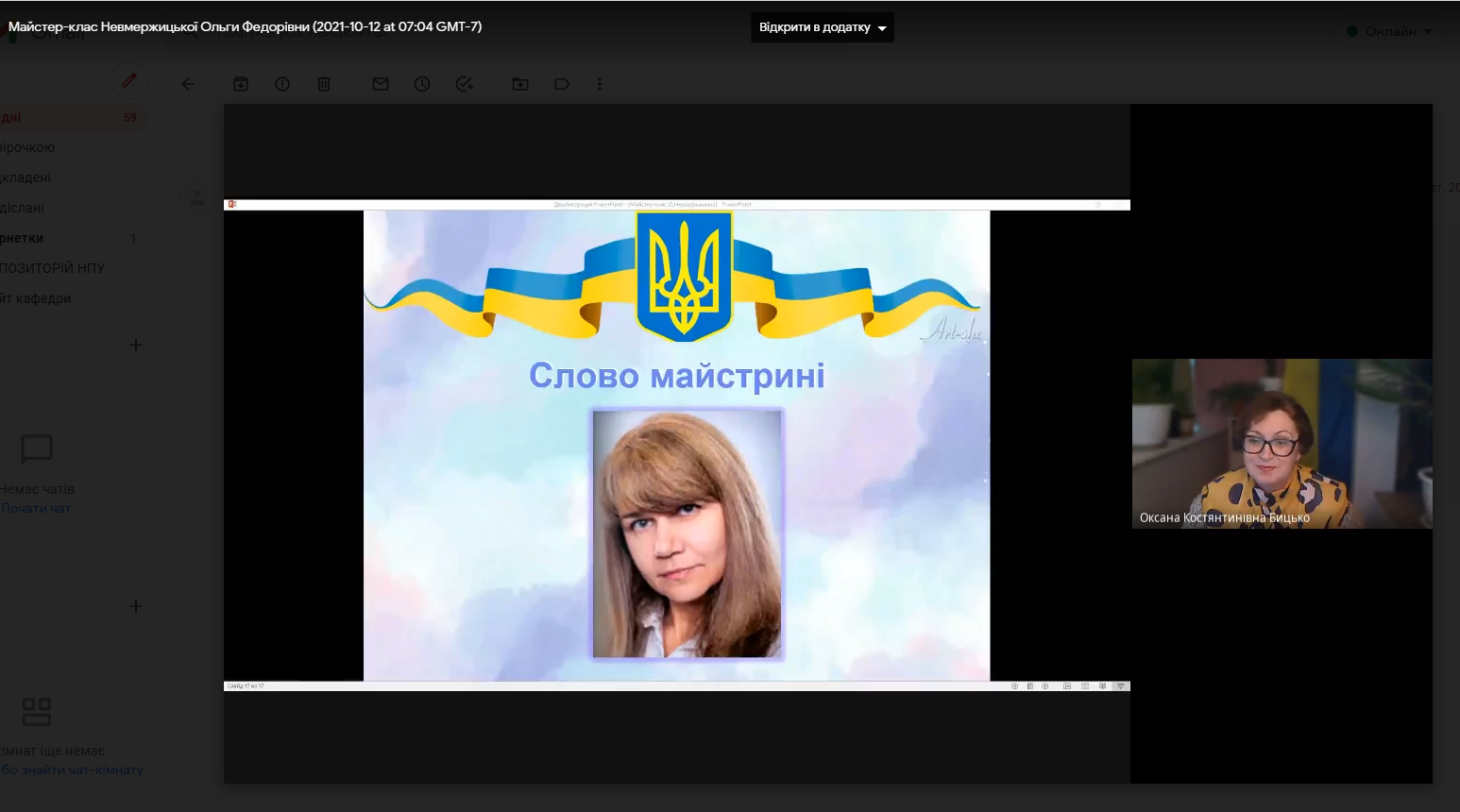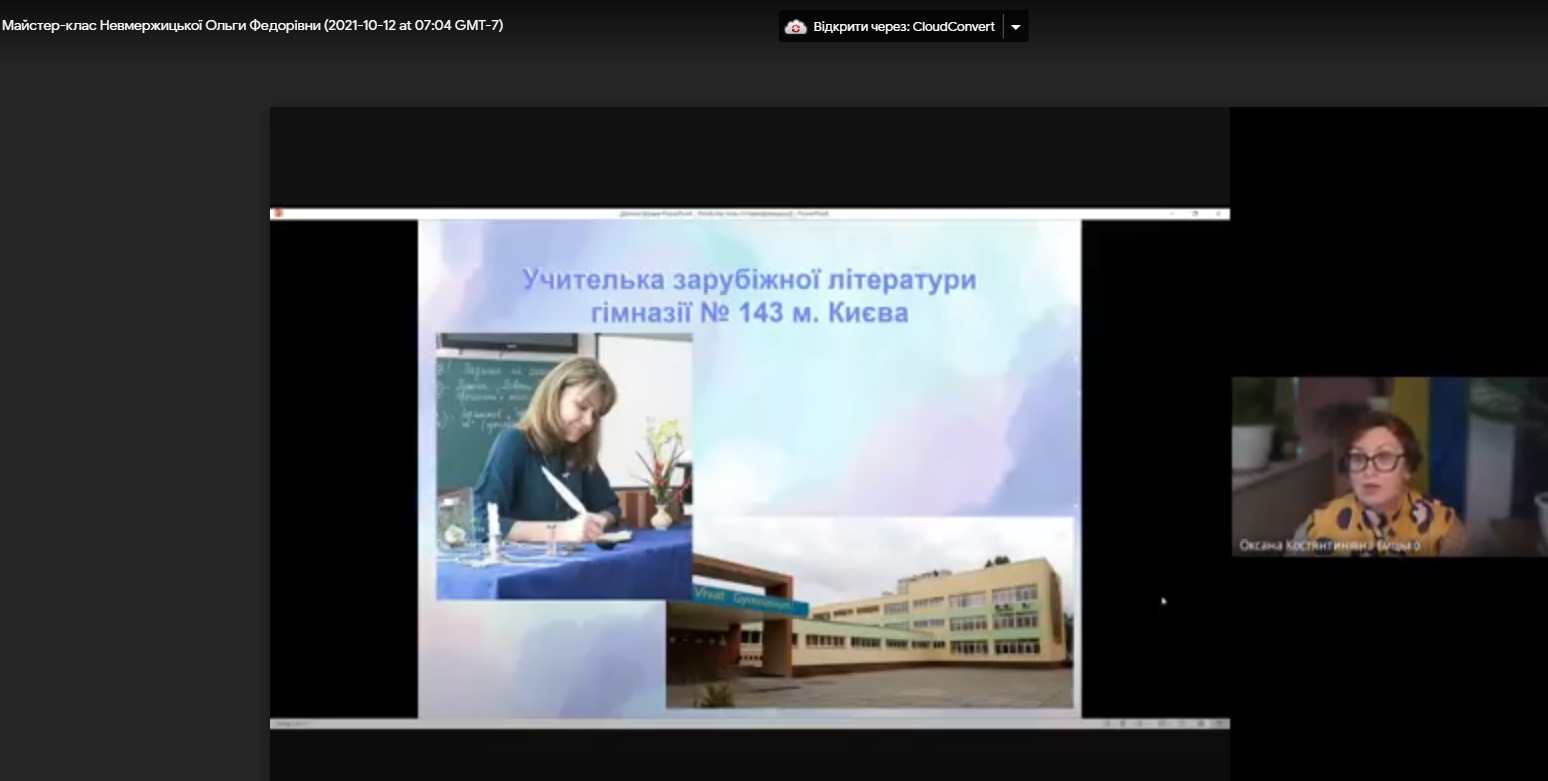 12 жовтня відбулася онлайн-зустріч викладачів та студентів факультету іноземної філології НПУ імені М. П. Драгоманова з відомою в Києві та Україні педагогинею, Заслуженою вчителькою України Ольгою Невмержицькою.