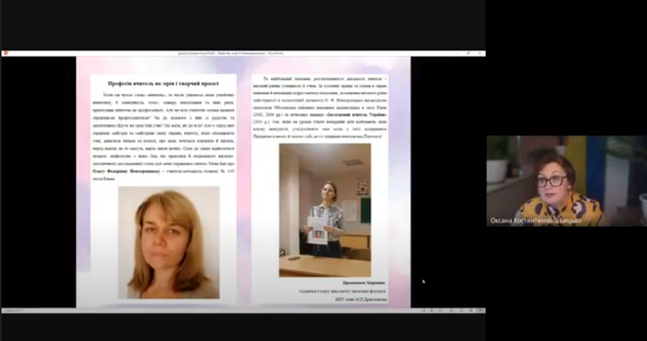 Приємною несподіванкою став виступ учительки зарубіжної літератури з Івано-Франківщини Ірини Олексюк, яка подякувала Ользі Федорівні за цікаві поради й поділилася власними враженнями від організації проєктної діяльності своїх учнів.